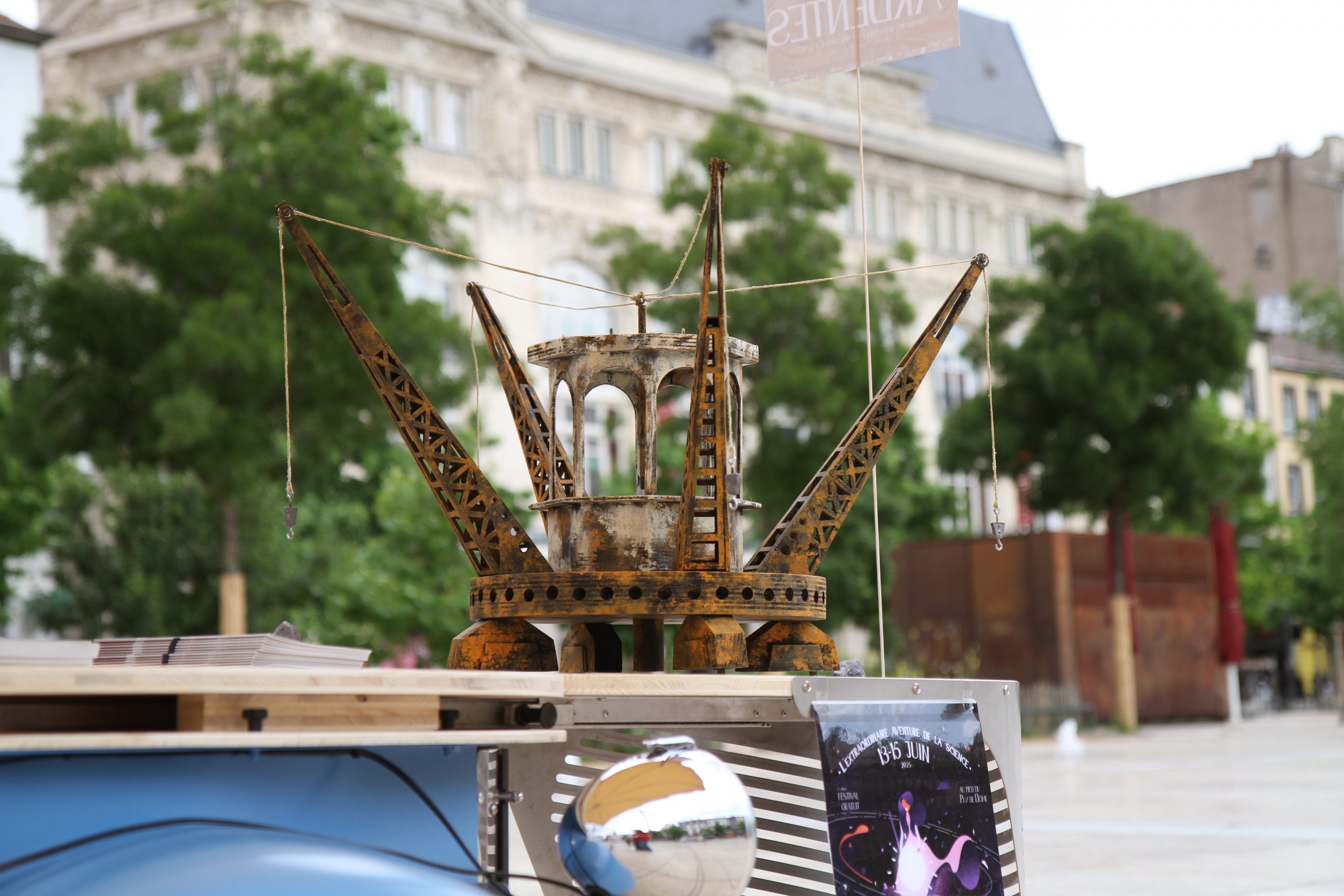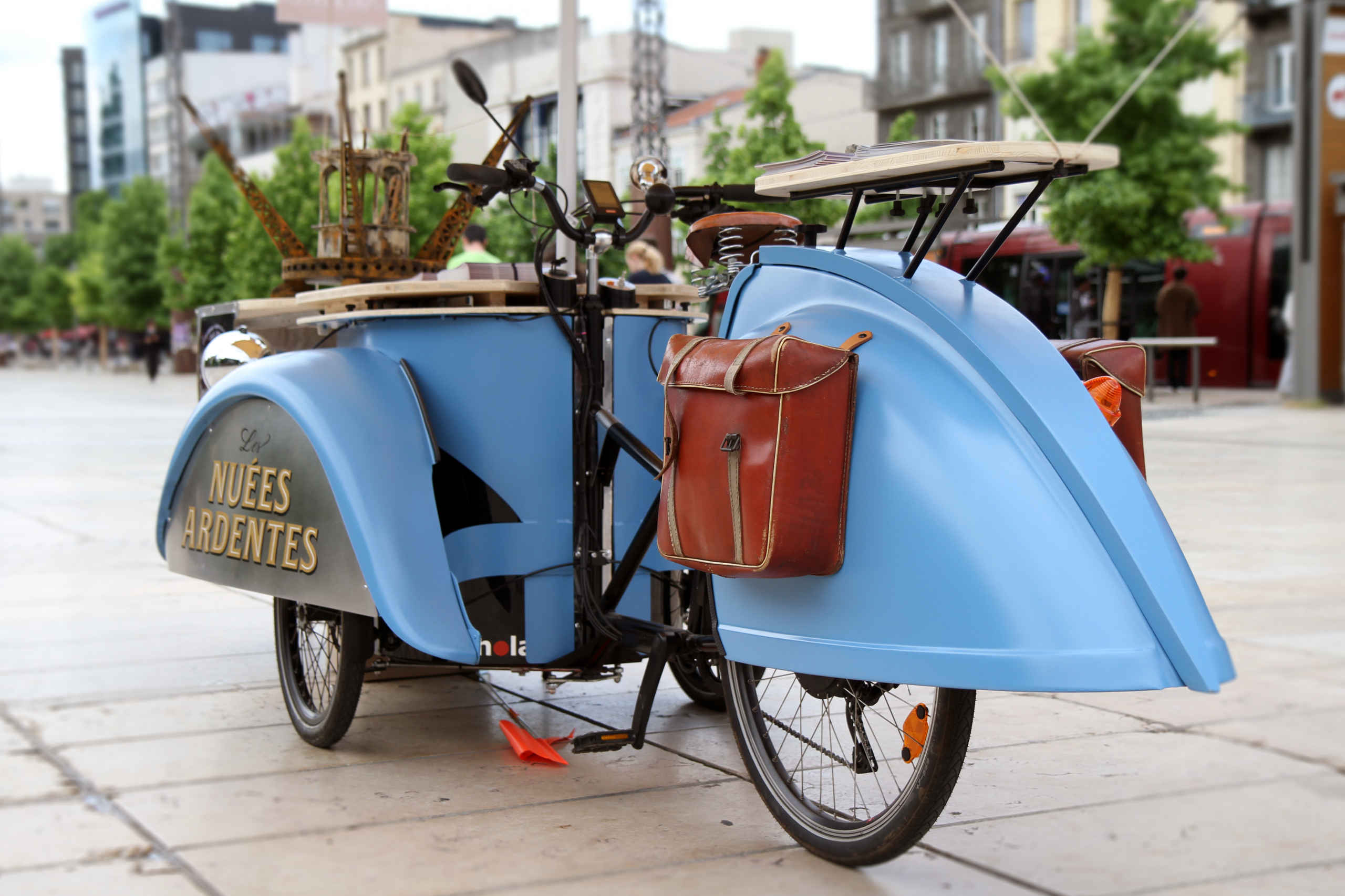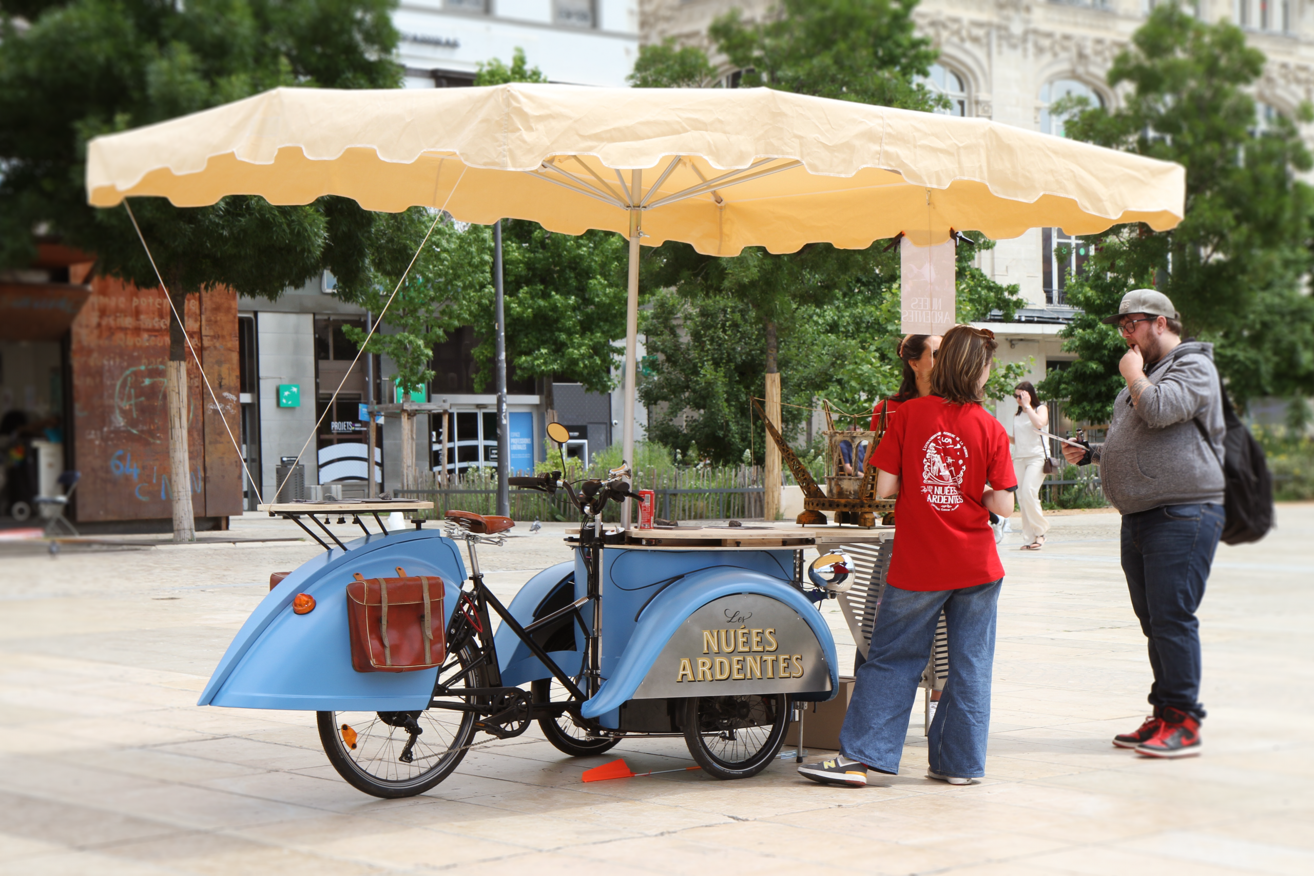 Ce stand, inspiré de la célèbre 2Deuche de Pierre-Jules Boulanger, a été conçu sur mesure pour Les Nuées Ardentes. Le décor amovible s'adapte à un triporteur électrique, permettant ainsi de se déplacer en mobilité douce pour des animations surprenantes. Vous pouvez le découvrir à l’occasion du festival Les Nuées Ardentes, lors de salons professionnels ou manifestations culturelles du territoire, ou encore lors d’actions de promotion au cœur de la métropole clermontoise.